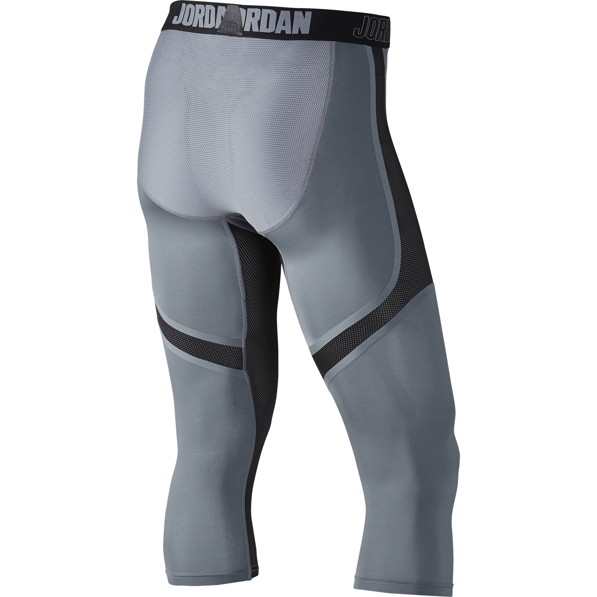 Air Jordan Stay Cool Compression Three-Quarter Men's Tights provide base-layer coverage for competition. They are contoured in front for anatomical support, with flat interior seams designed to move smoothly against your skin.